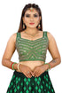 Embroidery Mirror Work V Neck Sleeveless Green Fancy Readymade Blouse