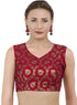 Pair This Red Brocade Blouse With Your Favourite Sleeveless V Neck. This Sleeveless Blouse Has A Square Neckline With Back Hook Placket. It Has Zari Designs All Over With Self Colour Threads, Detailed With Stones For A Beautiful Look.