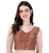 Charm Up Your Look And Pair This Peach Brocade Silk Blouse With Your Favourite Saree. The Sleeveless Blouse Has A U Neckline With Back Button Placket And Drawstrings. It Has Got Intricately Embellished Sequins To Complete The Look.