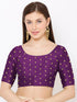 Refresh Your Look With Our Silk Hosiery Readymade Purple Blouse Online Which Completely Transform Your Saree Look With Plain Blouse, With Its Beautifully Fitted Princess Cut Design Blouse, Has Comfortable Round Neck And Three-Quarter Sleeves. Pair It With Purple Saree And Purple Blouse For A Dazzling Outfit That Reflects Classic Beauty And Style.