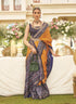 The Plum Ikat Printed Patola Saree With Contrast Zari Woven Border Epitomizes Elegance And Grace, Blending Traditional Craftsmanship With Contemporary Flair.