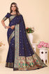 The Paithani Silk Saree Is A Stunning Blend Of Two Traditional Indian Weaving Styles. The Rich Color Is Vibrant And Eye-Catching, Perfect For Festive Occasions. The Banarasi Silk Fabric Adds A Touch Of Luxury, While The Paithani Weave Brings A Traditional Touch. The Saree Is Adorned With Intricate Zari Work, Adding To Its Elegance. This Saree Is A Perfect Choice For Weddings, Festivals, Or Any Special Celebration, Making You Look Graceful And Stylish.