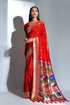 This Red Cyan Polka Paithani Silk Saree Is A Vibrant And Stylish Choice For Any Occasion. The Combination Of Red ย And Cyan With Polka Dots Creates A Fun And Playful Look. The Paithani Silk Fabric Adds A Touch Of Luxury And Drapes Beautifully. Whether You're Attending A Wedding Or A Festive Event, This Saree Is Sure To Make You Stand Out With Its Unique Style.
